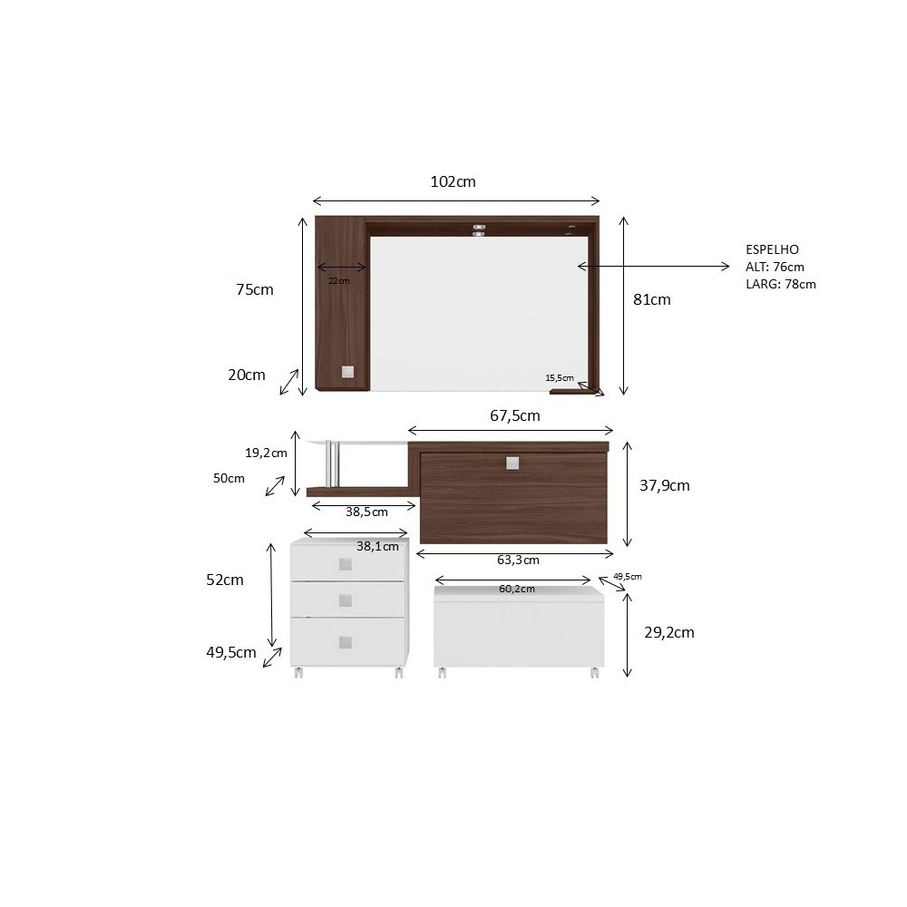 - Medida Gaveteiro: (L X A X P) 38cm x 47cm x 49,5cm