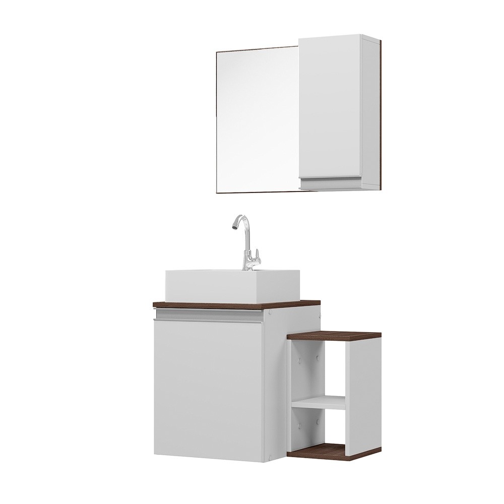 CONJUNTO ARMÁRIO PARA BANHEIRO ITÁLIA COMPLETO COM CUBA, TORNEIRA, VALVULA, SIFÃO E FLEXÍVEL