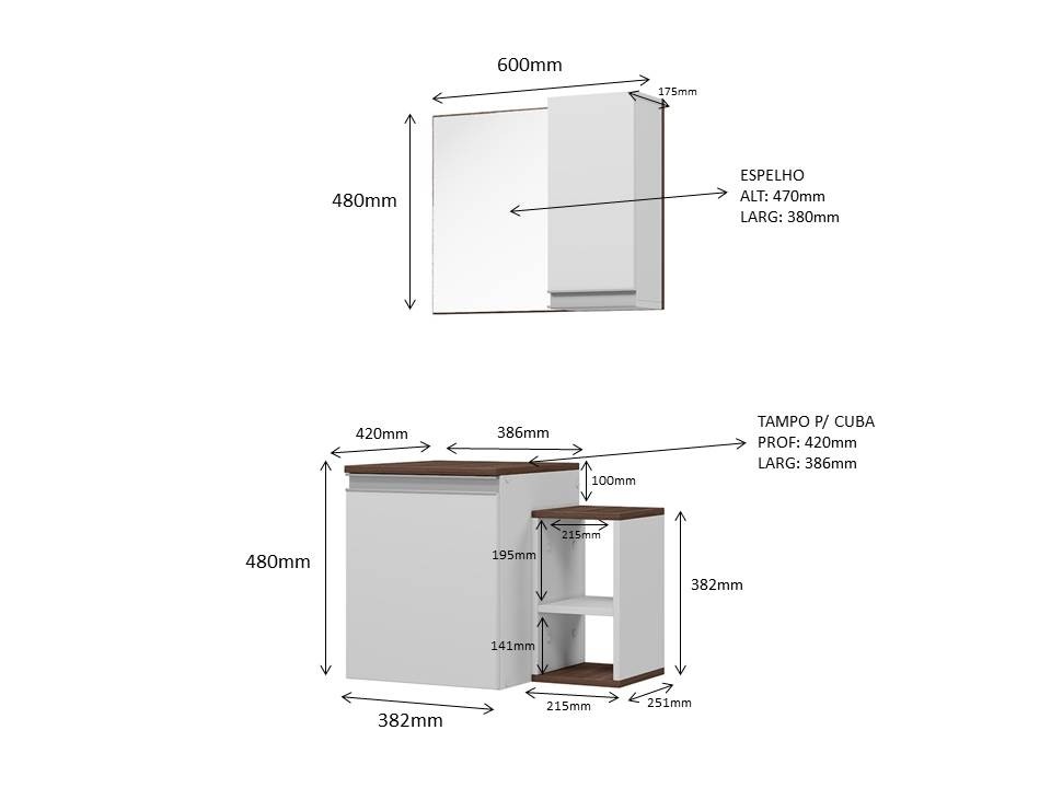 - Medida da Espelheira: (L X A X P ) 60cm x 48cm x 17,5cm