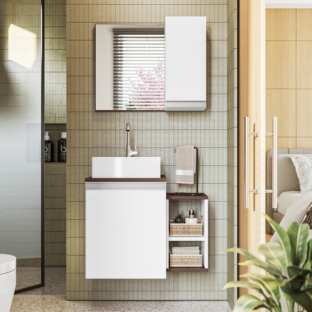 Ter o banheiro dos sonhos fica fácil com a mobília correta. Aliando elegância e praticidade, o Conjunto Armário para Banheiro Itália completo, composto por um gabinete suspenso e espelheira com espelho, não necessita de muito espaço para ser instalado, é fácil de limpar e dá um super up na decoração de qualquer banheiro. Inspirados nas novas tendências mundiais, agregando também ótima resistência, durabilidade e qualidade com muito requinte e beleza.