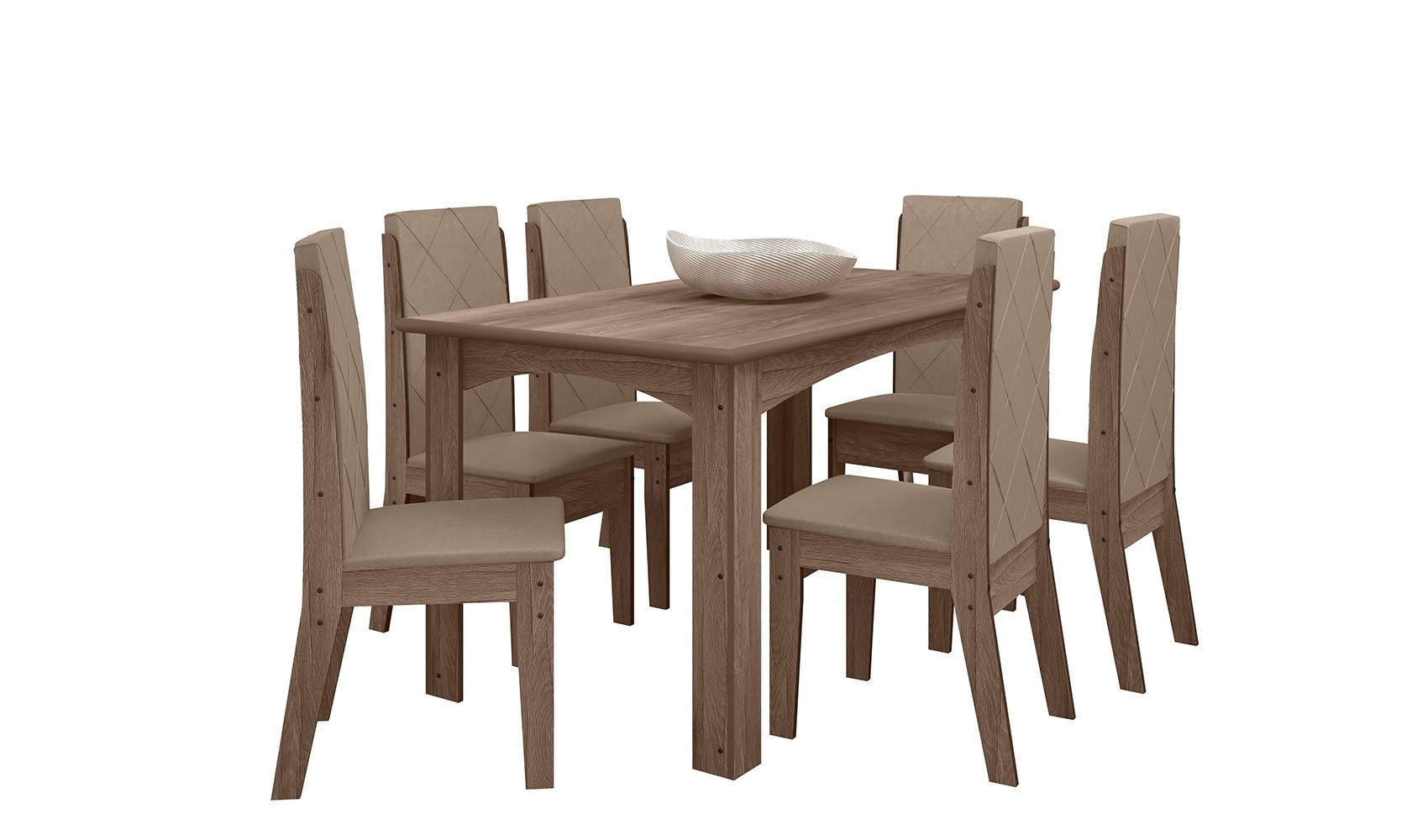 O conjunto Mesa para Sala de Jantar com 6 cadeiras Áustria destaca-se pela impressão dos detalhes amadeirados, replicando um design clean e despojado, dando um toque de modernidade ao ambiente e deixando o espaço das refeições ainda mais charmoso. Os acabamentos oferecem maior qualidade e durabilidade ao móvel.