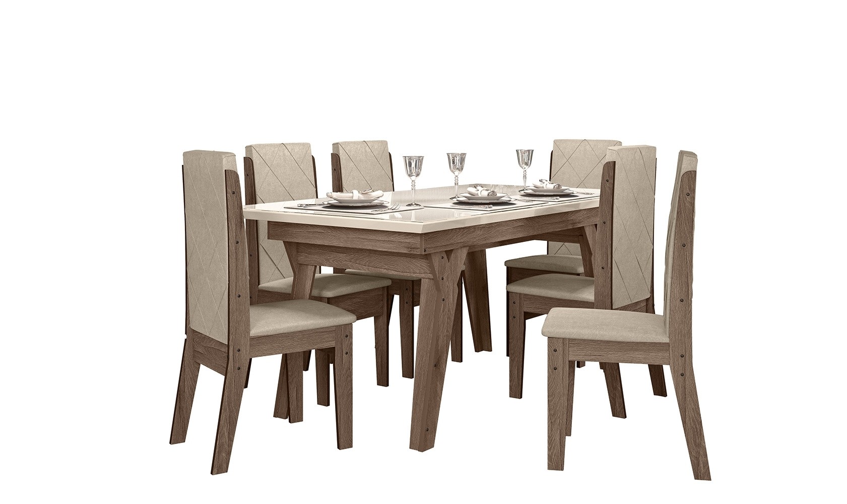 6 cadeiras (MDF/MDP) com assentos estofados.